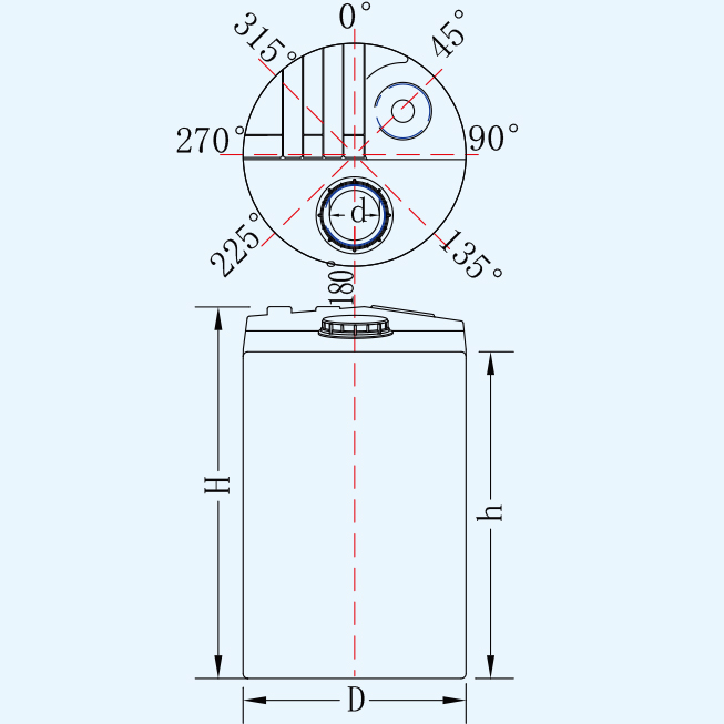 名稱 | 型號(hào) | 容量L | 人孔d | 直徑D | 垂高h(yuǎn) | 總高H | 平均厚度mm |