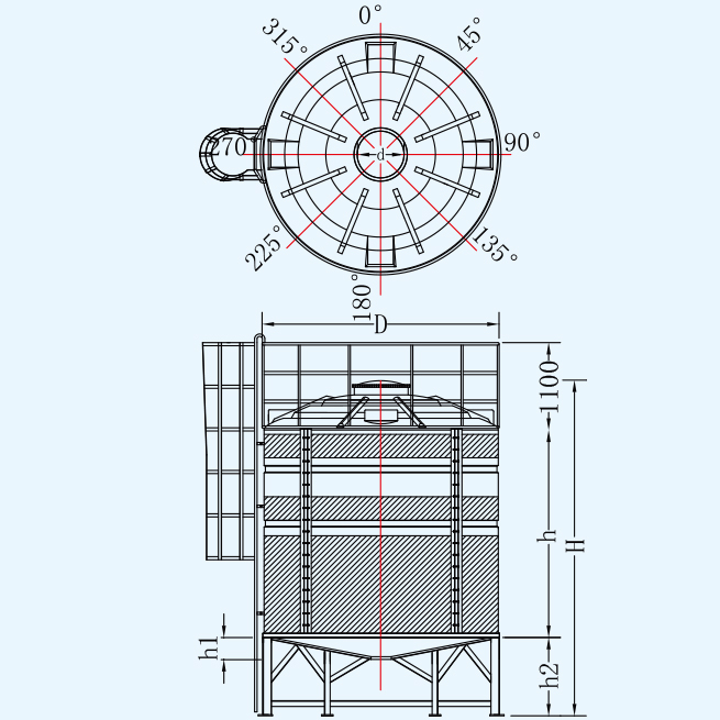 名稱 | 型號 | 容量L | 桶體直徑D | 人孔直徑d | 含腳總高H | 垂高h | 錐高h1 | 腳高h2 | 平均厚度mm |