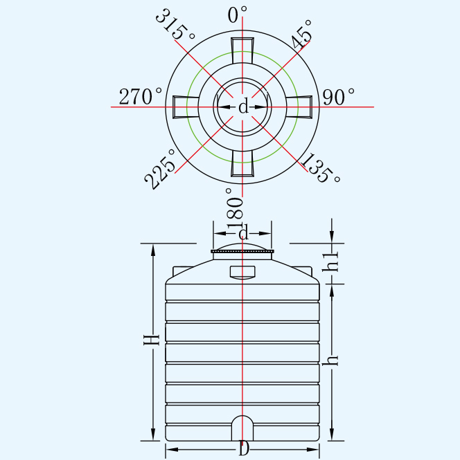 名稱 | 型 號(hào) | 容量L | 桶體D | 人孔d | 垂高h(yuǎn) | 總高H |