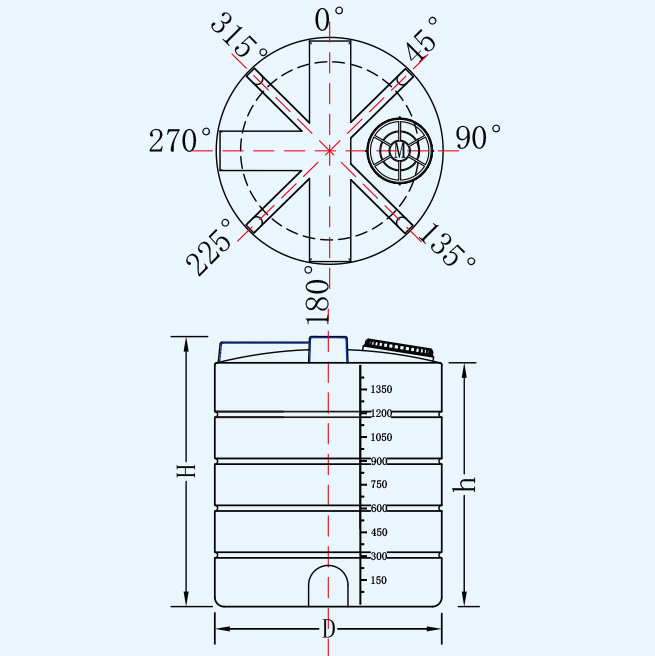 名稱 | 型號(hào) | 容量L | 人孔d | 直徑D | 垂高h(yuǎn) | 總高H | 平均厚度mm |