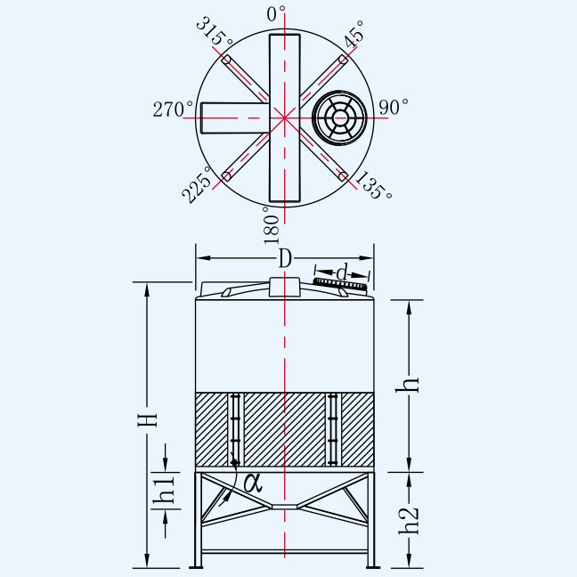 名稱 型號 容量L 桶體直徑D 人孔直徑d 含腳總高H 垂高h 錐高h2 腳高h1 平均厚度mm