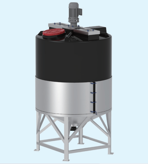 采用純進口聚乙烯為原料,耐藥性佳、桶身密閉無焊縫一體成型。桶底尖斜內(nèi)容物可一次流出、不留殘余物,清洗更容易。桶頂部方便安裝攪拌系統(tǒng)及加藥泵裝置。