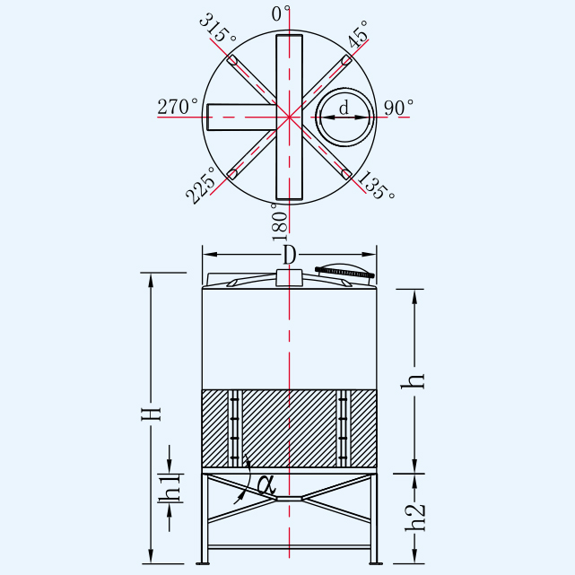 采用純進(jìn)口聚乙烯為原料,耐藥性佳、桶身密閉無焊縫一體成型。桶底尖斜內(nèi)容物可一次流出、不留殘余物,清洗更容易。桶頂部方便安裝攪拌系統(tǒng)及加藥泵裝置。