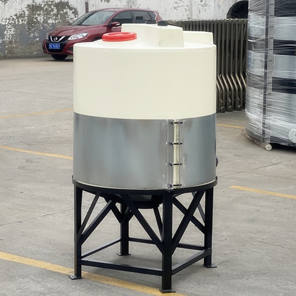 采用純進口聚乙烯為原料,耐藥性佳、桶身密閉無焊縫一體成型。桶底尖斜內(nèi)容物可一次流出、不留殘余物,清洗更容易。桶頂部方便安裝攪拌系統(tǒng)及加藥泵裝置。