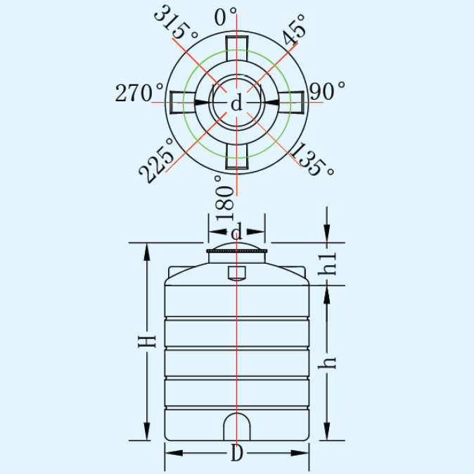 名稱 型 號 容量L 桶體直徑D 人孔直徑d 垂高h 總高H