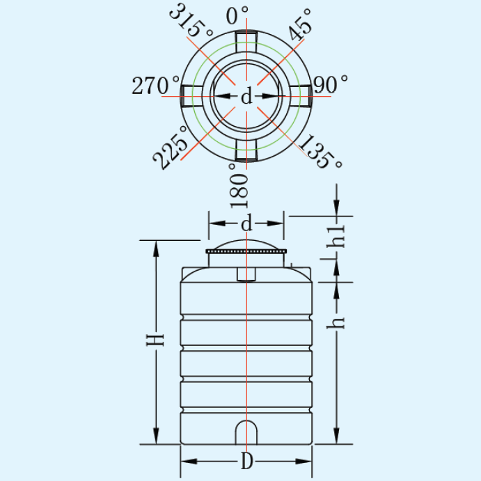 名稱 | 型 號 | 容量L | 桶體直徑D | 人孔d | 垂高h | 總高度H |