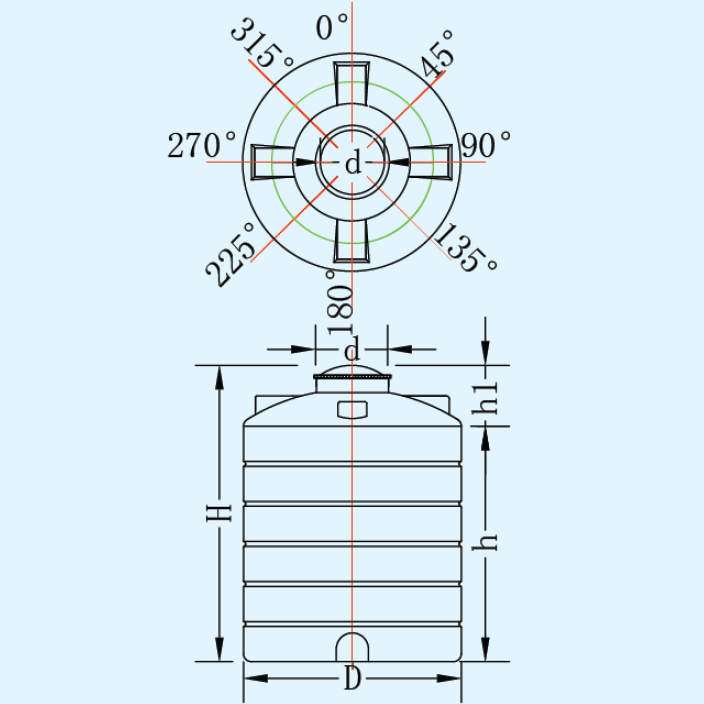 名稱 型 號(hào) 容量L 桶體直徑D 人孔d 垂高h(yuǎn) 總高H