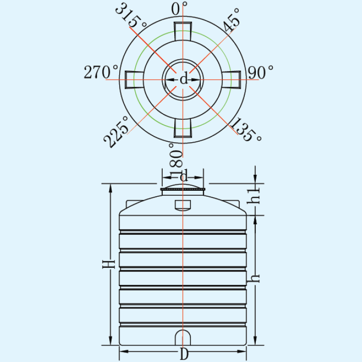 名稱 型 號 容量L 桶體D 人孔d 垂高h(yuǎn) 總高H