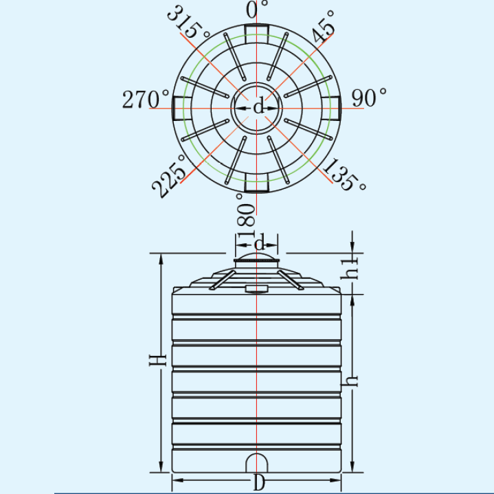 名稱 型 號 容量L 桶體D 人孔d 垂高h(yuǎn) 總高H