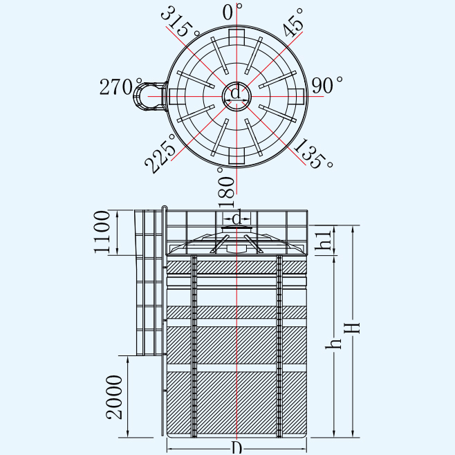 名稱 | 型 號(hào) | 容量L | 桶體D | 人孔d | 垂高h(yuǎn) | 總高H |